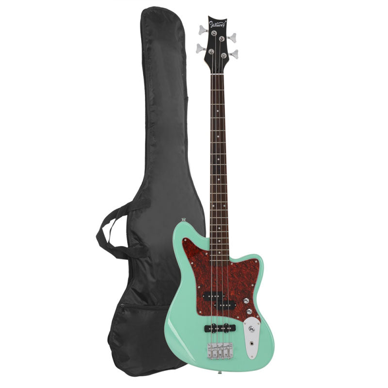 This 4-string bass guitar is made with high-quality basswood and a durable rosewood bridge and fingerboard. It has an ergonomic design and 20 frets, providing excellent playability and comfort.