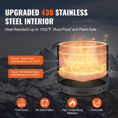 Smokeless Heating: Our smokeless wood-burning fire pit features a double-layer thermal lock design, igniting wood rapidly within 3 minutes for eco-friendly heating in all directions. Choose from three models: 15, 19, and 28 inches.